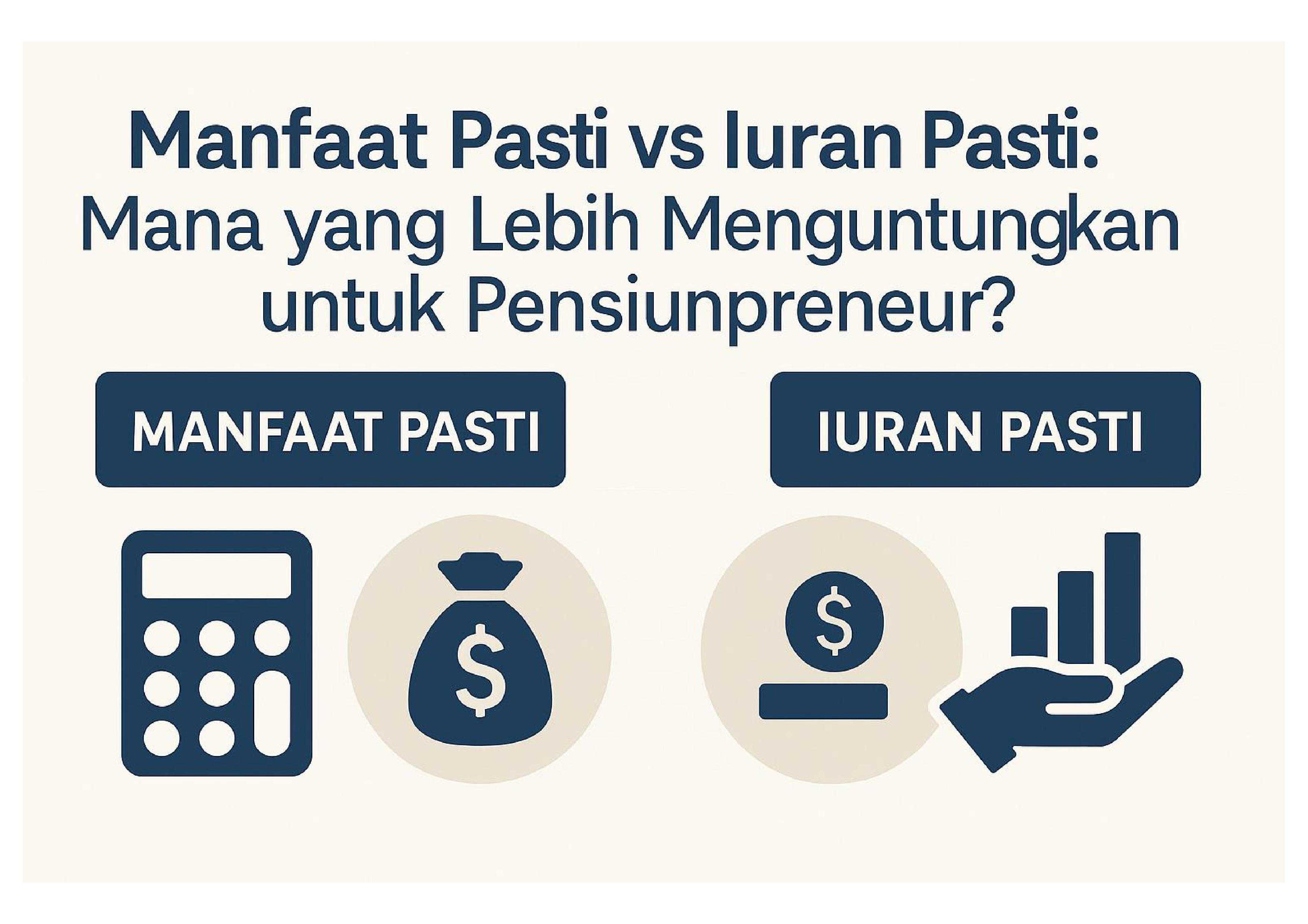 Sebagai Pensiunpreneur yang cerdas, gunakan program pensiun Anda sebagai salah satu pilar keuangan yang mendukung bisnis Anda, bukan sebaliknya. Pilih skema yang paling sinergis dengan ambisi dan profil risiko Anda dalam merintis babak baru kehidupan!