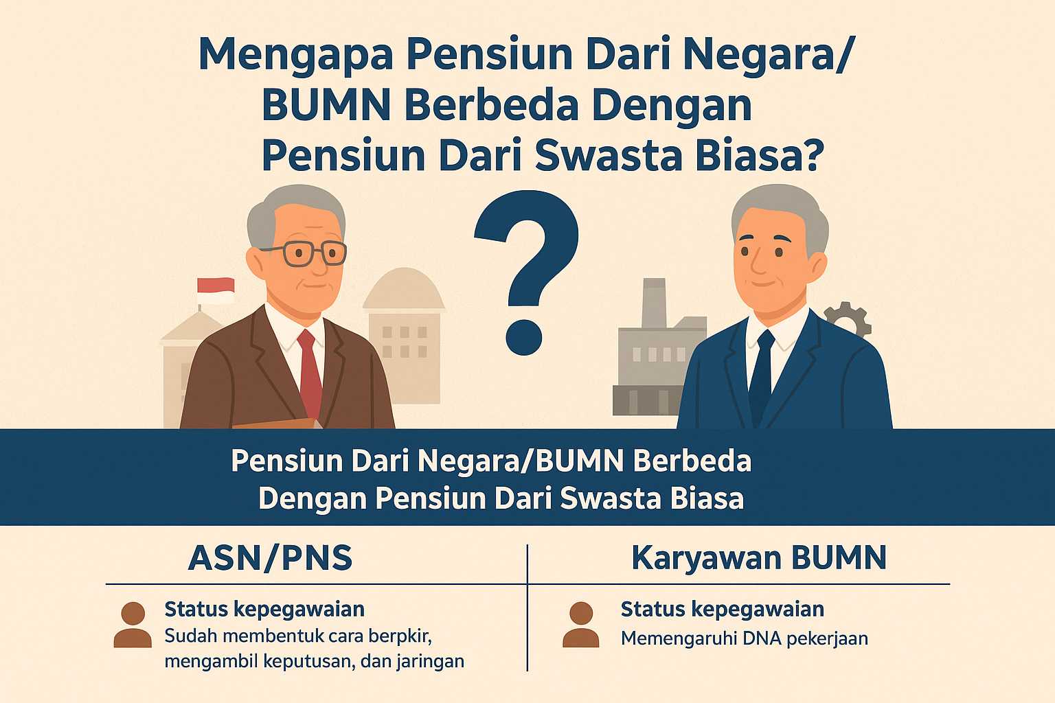 Meskipun sama-sama meninggalkan 'zona nyaman' yang sangat terstruktur, tantangan psikologis dan peluang bisnis untuk ASN/PNS berbeda signifikan dengan Karyawan BUMN. Mengapa? Karena DNA pekerjaan mereka berbeda.